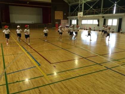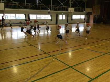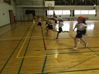 3校時、体育館で体力テストの練習です。