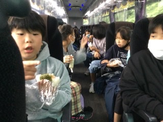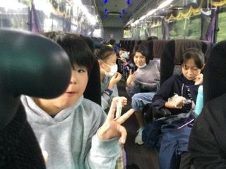 写真では、ちょっと分かりづらいと思いますがおもいます、バスには、感染予防のために、列ごとにフィルムが付けられています。