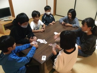 男女仲良くレクをしています。