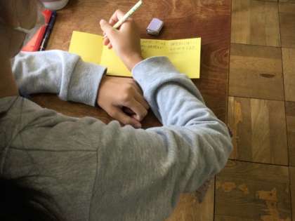 最近うれしかったことについて、カードに記入していました。