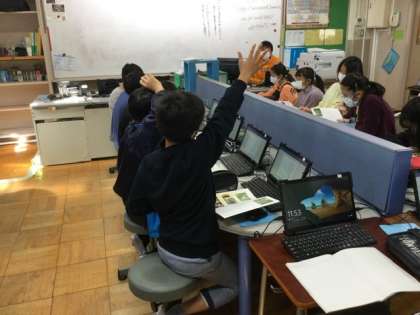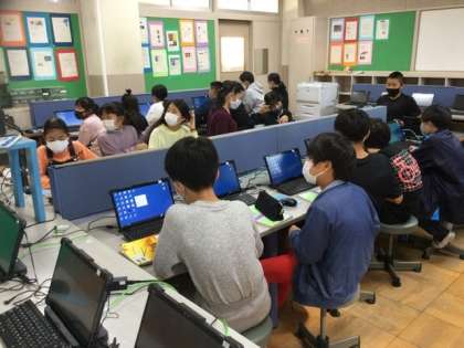 教室でTeamsを使用する予定でしたが、子どもたちが変更したPWを覚えていないなどの事情があって、PC室に変更して実施しました。