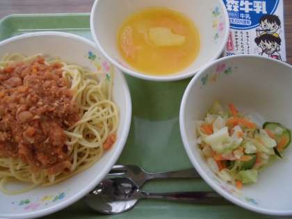 スパゲティミートソース・イタリアンサラダ・オレンジポンチ