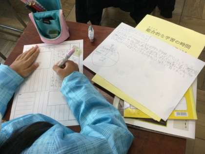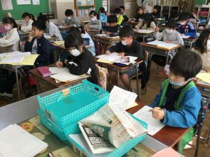 1学期にみんなが育てたカイコ、観察して分かったことを新聞に記しています。