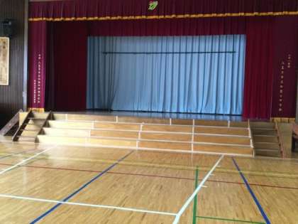 午後、小中学校教員全員で舞台づくりを行いました。