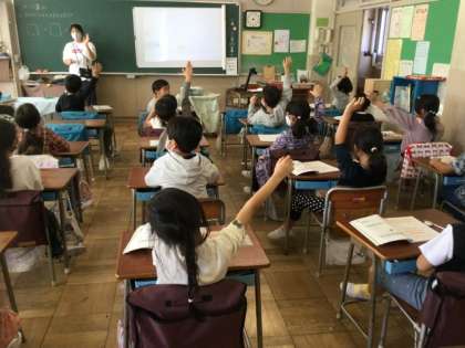 3校時、かけ算の九九が始まりました。