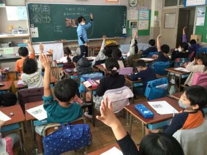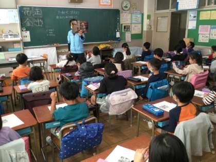 写真の女の子が、何を言おうとしているのかを予想しています。