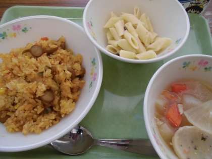 メキシカンライス・ペンネカルボナーラ・野菜のスープ煮・牛乳