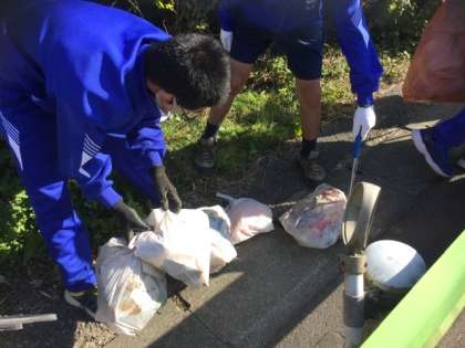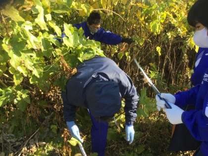 子どもたちが、草むらに入って回収しました。