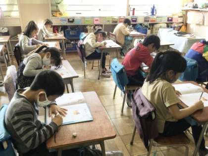 1校時、漢字の学習をしています。