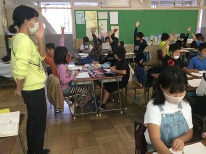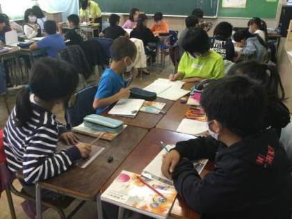 3校時、手のつく言葉を意味ごとに仲間分けしています。
