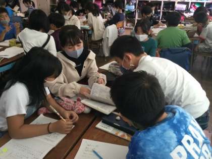 漢和辞典で調べ、意見交換をしながら学習を進めています。