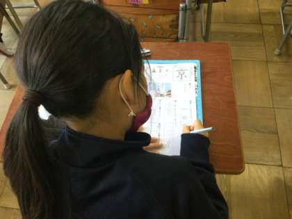 1校時、漢字の学習をしています。