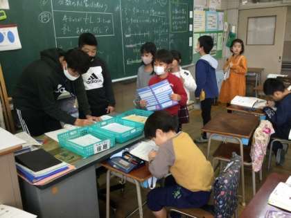 5校時、もう一つのグループは、分数のたし算の演習をしていました。