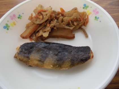 おかずに合いました。ホッケの塩焼きの骨に格闘しながらも、とてもよく