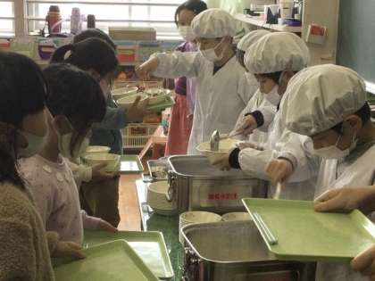 待ちに待った給食の時間です。