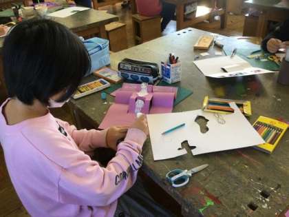 4校時、飛び出す仕組みのカードを作っています。