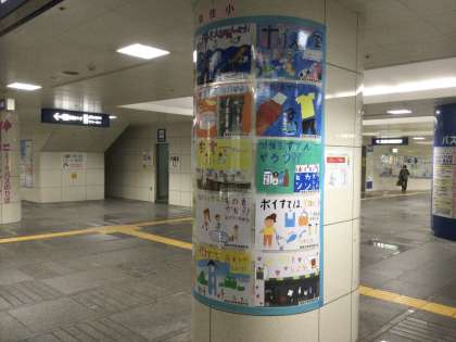 駅北口から地下自由通路に降りるエスカレーターを降りた正面とその右にある柱2本に掲示されています。