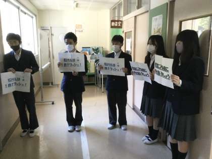 ゲーム集会、中学部の委員会活動、持久走月間の取組の証です。