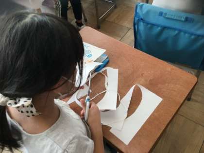 ハサミで切り抜いた形を、ルールに従って2回折ります。