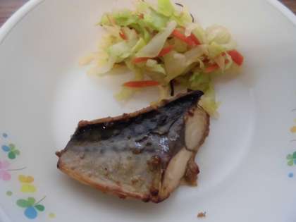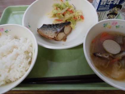 ご飯・鯖のごま風味焼き・キャベツと昆布のお浸し・のっぺい汁・牛乳