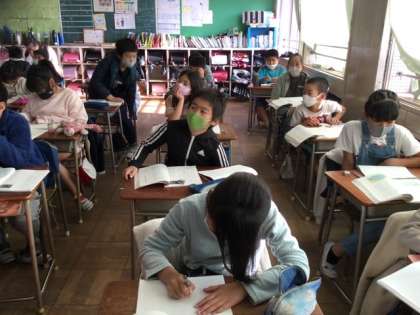5校時、「ウミガメの命をつなぐ」を学習しています。