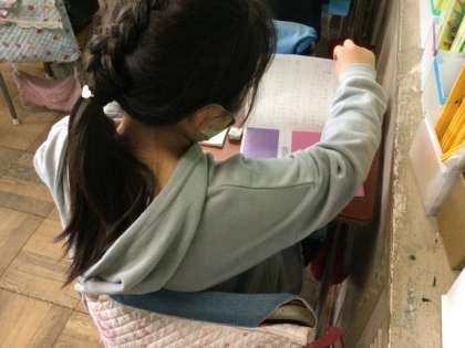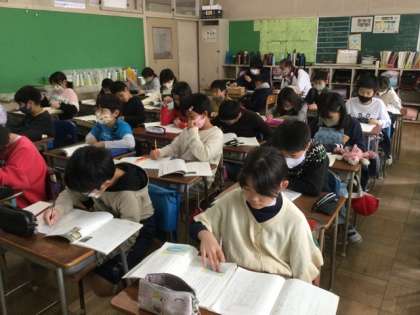 3校時、ウミガメの保護のための研究と解決すべき課題について、本文から読み取っています。