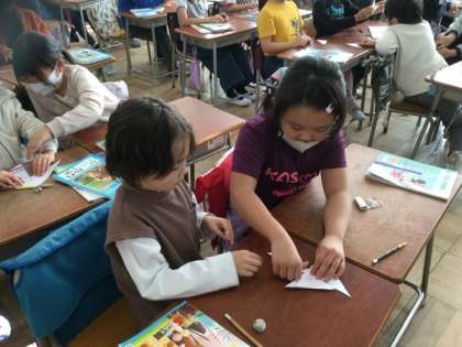 5校時、2種類の直角三角形4枚を使って、色々な形を作りました。