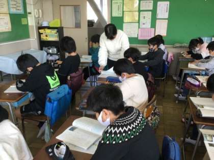 1校時、「ウミガメの命をつなぐ」の学習の続きです。