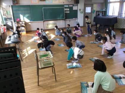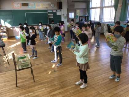 2校時、様子を思い浮かべて歌います。