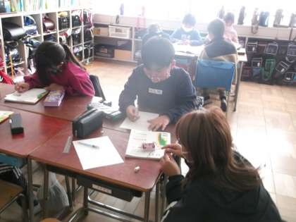お金や机の骨組み、消しゴムや定規、身の回りにあるものを豆電球と電池を使って、電気を通すのか調べていました。