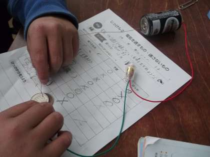 今日の理科は電気を通すものを調べました。