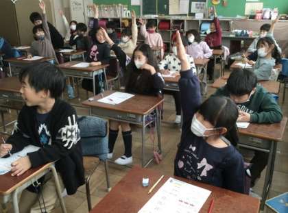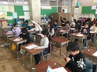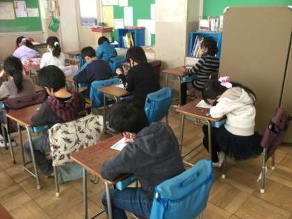 2校時、2学期の復習プリントを解きました。