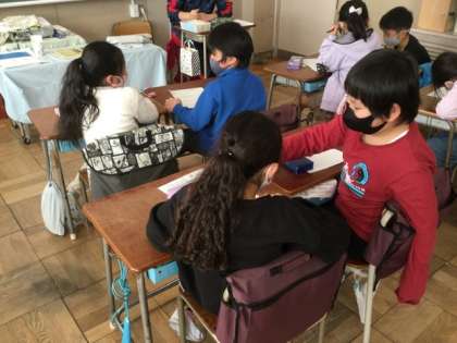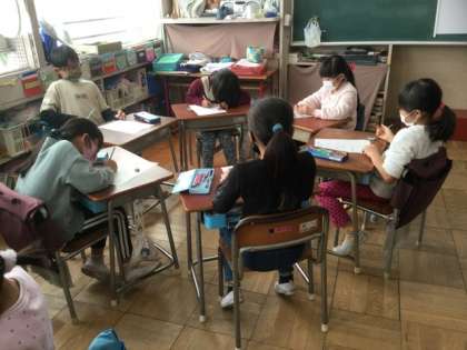 3校時、「ひみつの会」の打ち合わせを行っています。