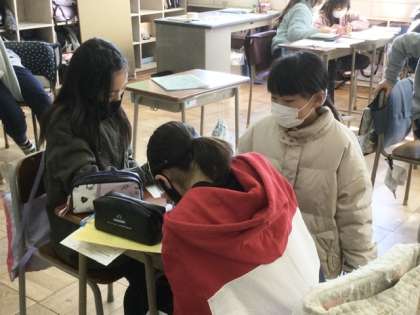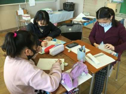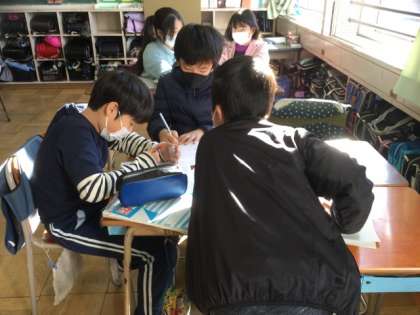 2校時、先生方にインタビューした結果を英文で作文しています。