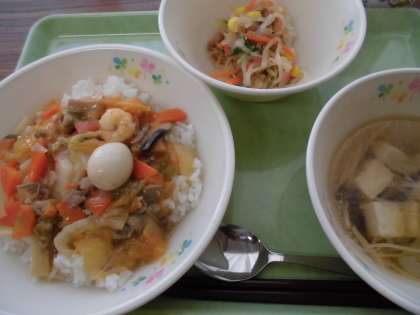 中華丼・ツナと大根のサラダ・豆腐ときくらげのスープ・牛乳