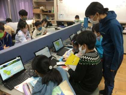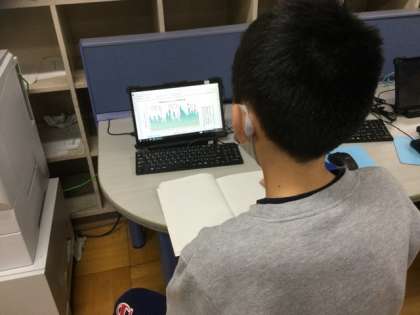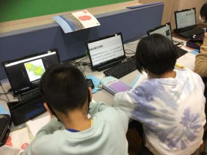 3校時、パソコン室で調べ学習中です。