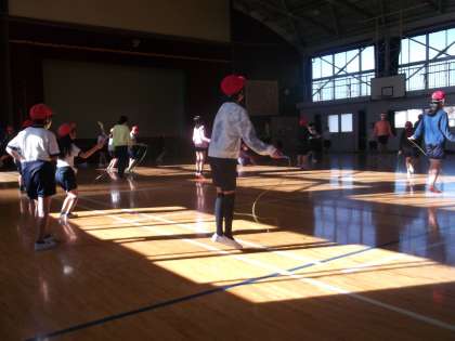 つま先で飛ぶ、脇をあけない、手首を使って縄を回すなど、上手に跳ぶこつをみんなで考えて練習しました。