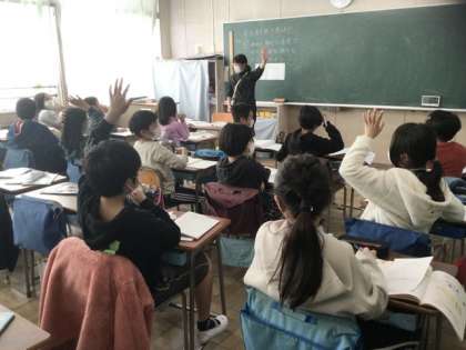 6校時、2つの事柄を表に整理する学習です。