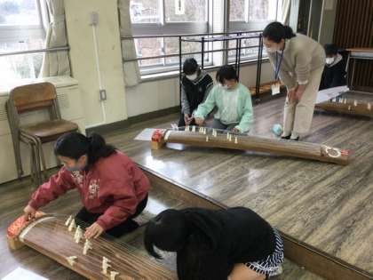 6年生音楽、琴の学習の様子です。