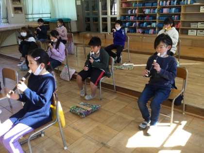 3校時、リコーダーの練習をしていました。