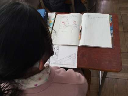 4校時、三角定規の角の大きさの学習です。