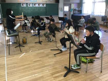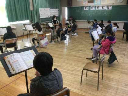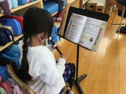 2校時、リコーダーの練習をしています。