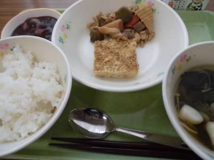 ご飯・松風焼き・いりどり・あられはんぺんのお吸い物