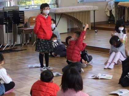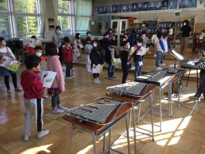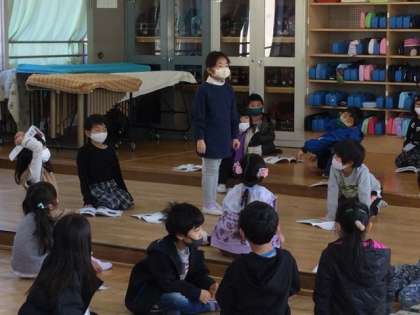 2校時、歌詞から様子を思い浮かべて歌う学習です。