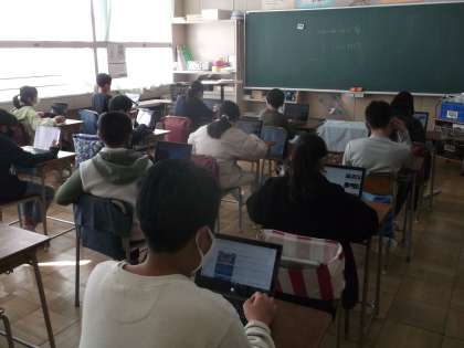 5年生1,2組共に、学校に1人1台配布されたパソコンを操作しました。
