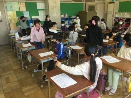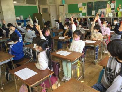 起立している子が、順番に自分の意見を発表していました。