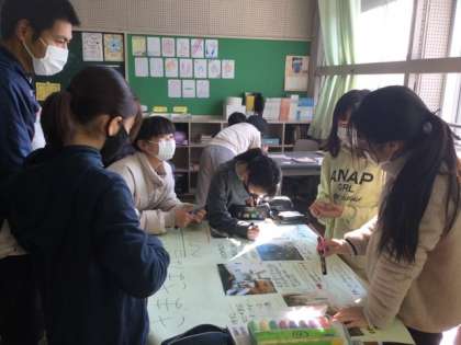 模造紙に調べたことをまとめています。