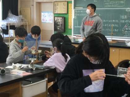 3校時、理科室で実験です。