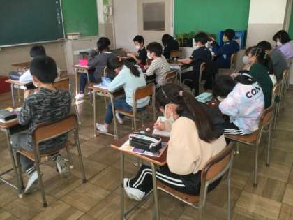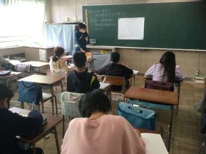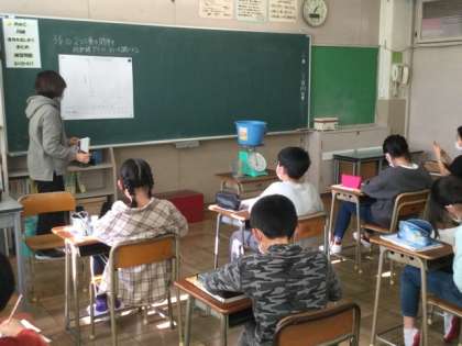 5校時、2つの数量の関係を折れ線グラフで表して考えます。