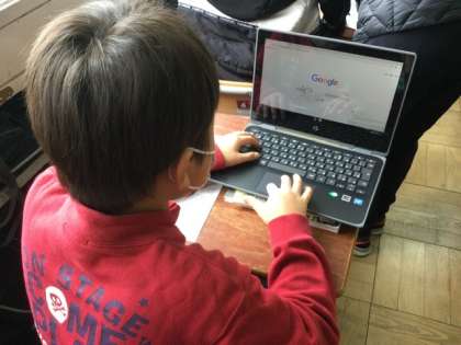 タブレットを使って調べています。